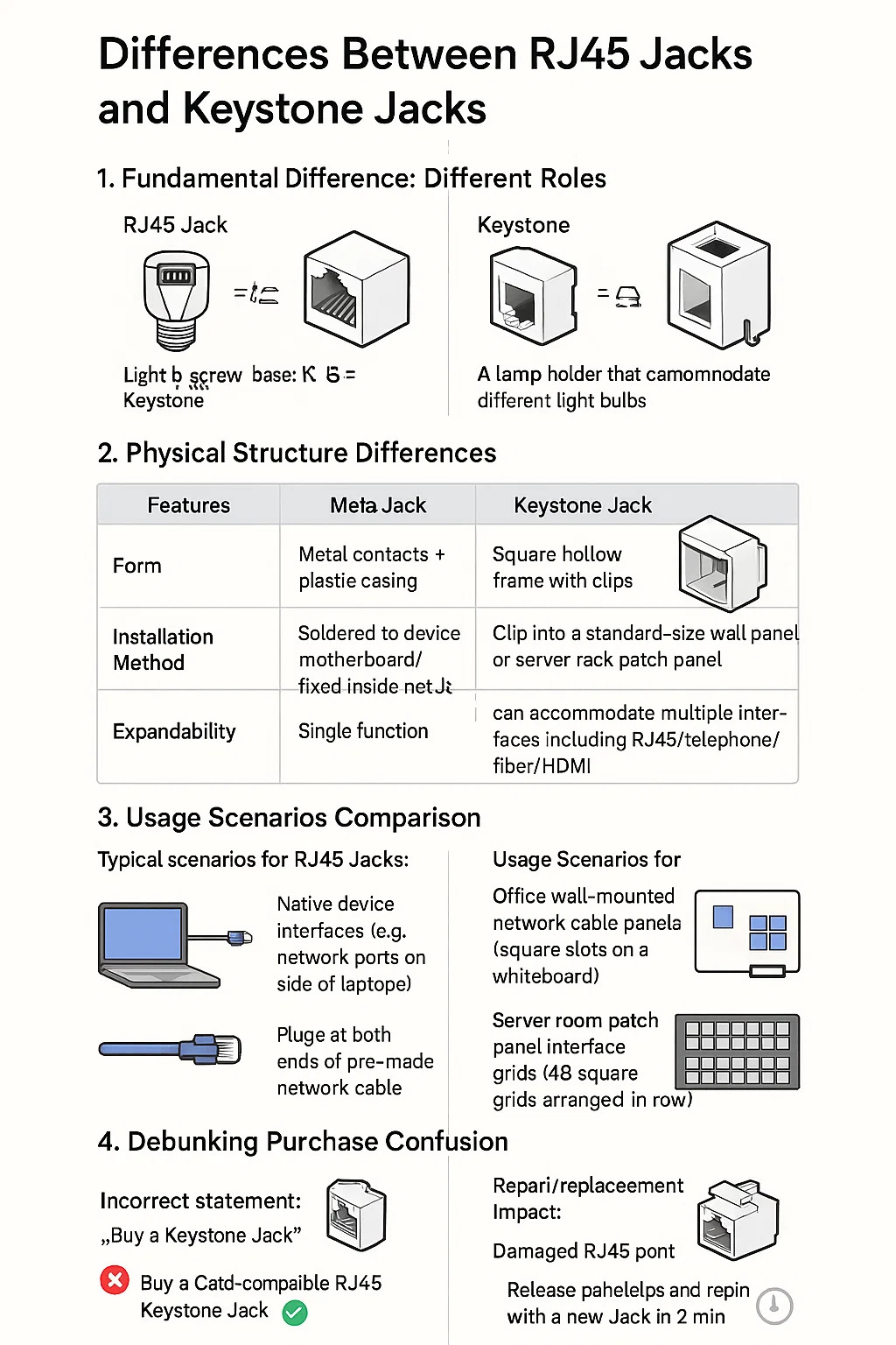 Dichiarazione errata: "Compra un Keystone Jack" ** (Keystone è una base, non un Jack a sé stante)